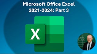 Skills you'll gain: Excel Formulas, Microsoft Excel, Spreadsheet Software, Forecasting, Pivot Tables And Charts, Data Presentation, Data Analysis, Data Sharing, Microsoft Office, Microsoft 365, Collaborative Software, Productivity Software, Automation, Data Mapping, Data Entry, Document Management, Data Security, Data Management, Data Validation, User Interface (UI)