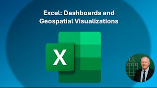 Skills you'll gain: Data Storytelling, Data Presentation, Dashboard, Microsoft Excel, Data Visualization Software, Pivot Tables And Charts, Geospatial Information and Technology, Spreadsheet Software, Geospatial Mapping, Data Analysis, Productivity Software, Microsoft Office, Microsoft 365