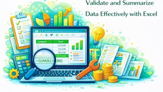 Skills you'll gain: Excel Formulas, Data Validation, Microsoft Excel, Accounting and Finance Software, Accounting Records, Spreadsheet Software, Data Quality, Data Maintenance, Financial Analysis