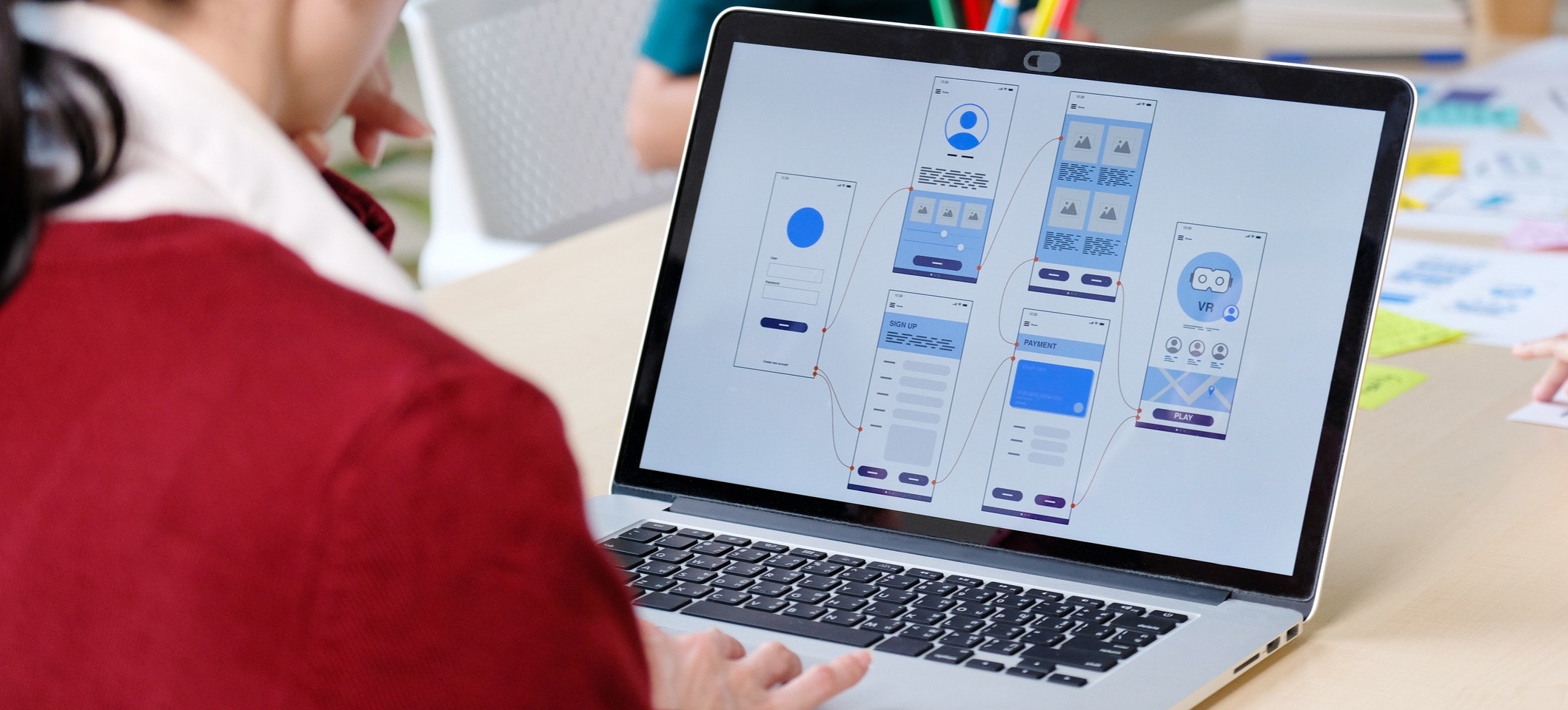 ![[ Image en vedette ] Un designer UX vêtu d'un pull rouge travaille sur les schémas de câblage d'un prototype haute fidélité sur son ordinateur portable, dans un bureau partagé.](https://d3njjcbhbojbot.cloudfront.net/api/utilities/v1/imageproxy/https://images.ctfassets.net/wp1lcwdav1p1/QCoHyVXrXykYsR1K1Gx7M/40e240a5e18e99aeaa80461d473b7914/GettyImages-1268172253.jpg?w=1500&h=680&q=60&fit=fill&f=faces&fm=jpg&fl=progressive&auto=format%2Ccompress&dpr=1&w=1000)