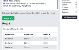 SQL est un outil puissant utilisé pour gérer et manipuler les données dans les bases de données relationnelles. Tout au long de ce cours, vous acquerrez les compétences essentielles pour extraire efficacement les données pertinentes des bases de données, ce qui vous permettra de naviguer facilement dans de vastes quantités d'informations. En mettant l'accent sur l'application pratique, vous plongerez dans le monde de l'analyse des données, découvrant comment tirer des enseignements significatifs de grands ensembles de données hébergés dans des bases de données relationnelles complexes. À la fin de ce cours, vous acquerrez des compétences pour créer et modifier des bases de données, ce qui vous permettra de résoudre des problèmes professionnels réels. Apprendre à filtrer et à nettoyer les ensembles de données, afin de garantir la précision et la fiabilité de votre analyse. Que vous aspiriez à devenir un analyste de données, un professionnel de la veille stratégique ou un décideur s'appuyant sur des données, ce cours vous fournira les outils et les connaissances nécessaires pour réussir.