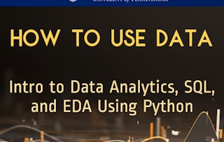 Ready to start a career in Data Analysis but don’t know where to begin? This course presents you with a gentle introduction to Data Analysis, the role of a Data Analyst, and the tools used in this job. You will learn about the skills and responsibilities of a data analyst and hear from several data experts sharing their tips & advice to start a career. This course will help you to differentiate between the roles of Data Analysts, Data Scientists, and Data Engineers.