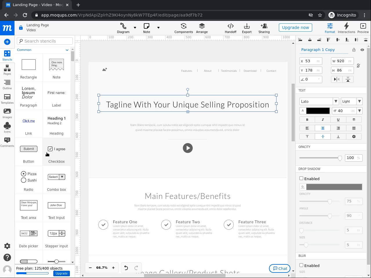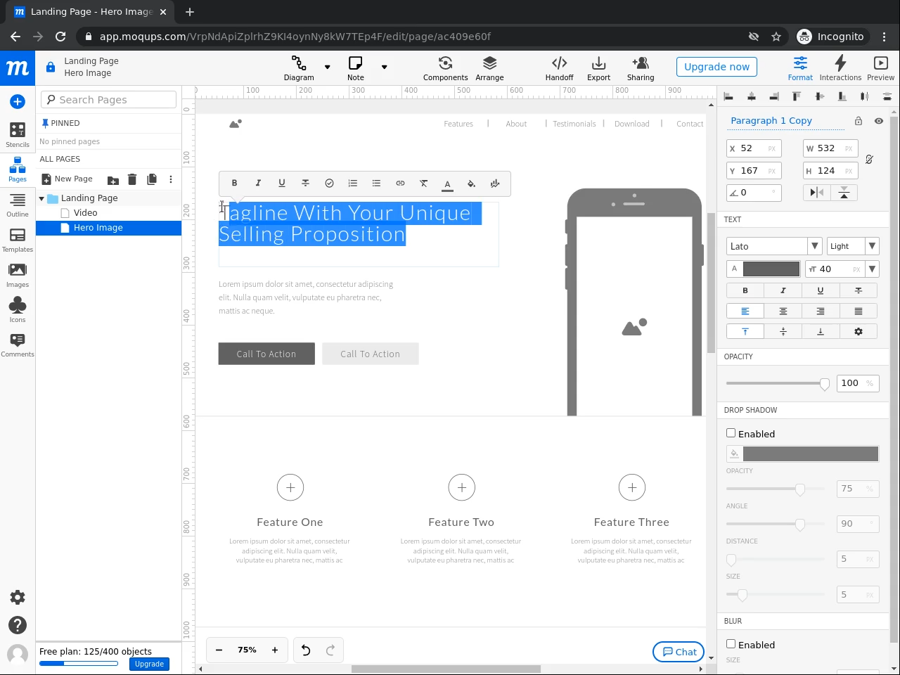 Create a website mockup with Moqups