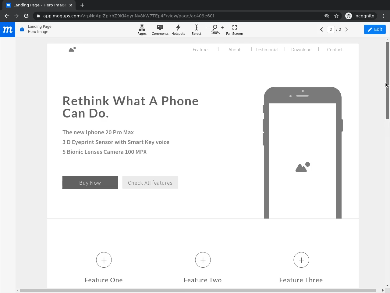 You will be able to create a landing page mockup with Moqups