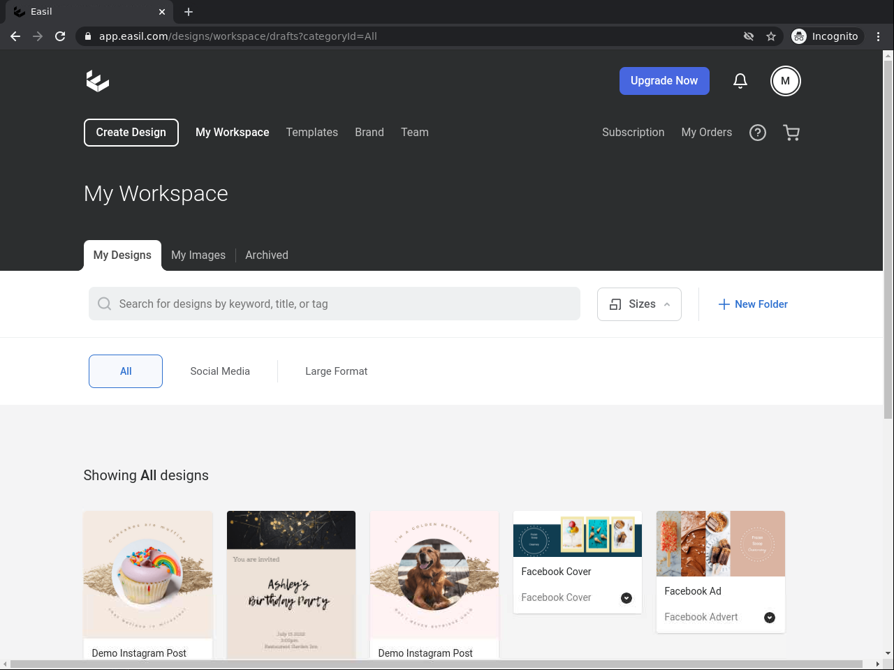 1. Erstelle einen gratis Easil Account und erkunde deinen Easil Arbeitsplatz.