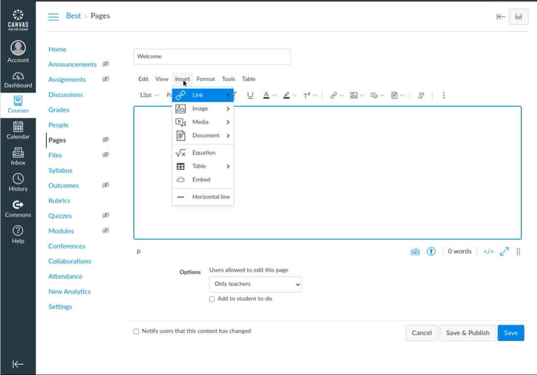 Build a homepage for a course in Canvas