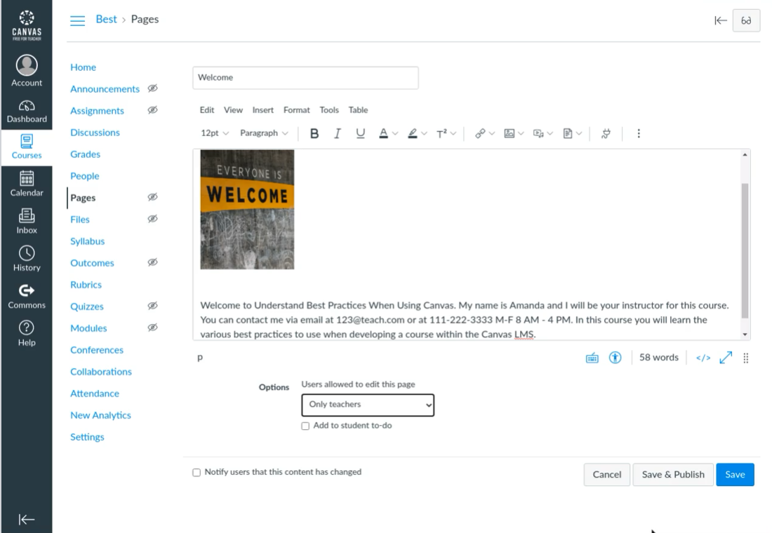 In this 2-hour long project-based course, you will learn how to use Canvas LMS best practices to develop an effective learning environment for your students through a hands on and organized approach. Through the Canvas LMS you will be able to support and develop online learning in a variety of ways.